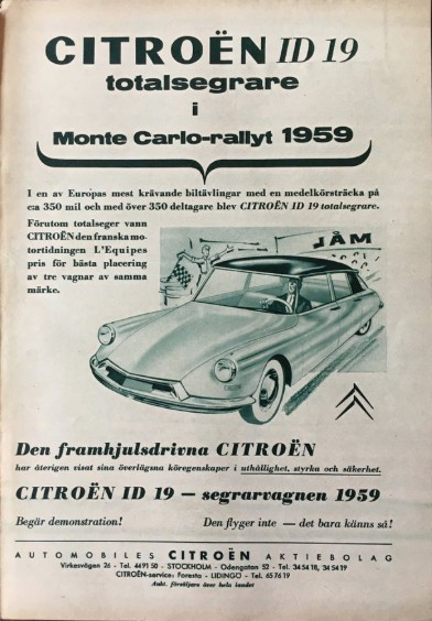 Ensuite, au Printemps 60, Citroën rebondira aussi sur le titre de champion d'Europe des Rallyes glané en 59 par Coltelloni, en éditant une pub sous forme de flammme postale