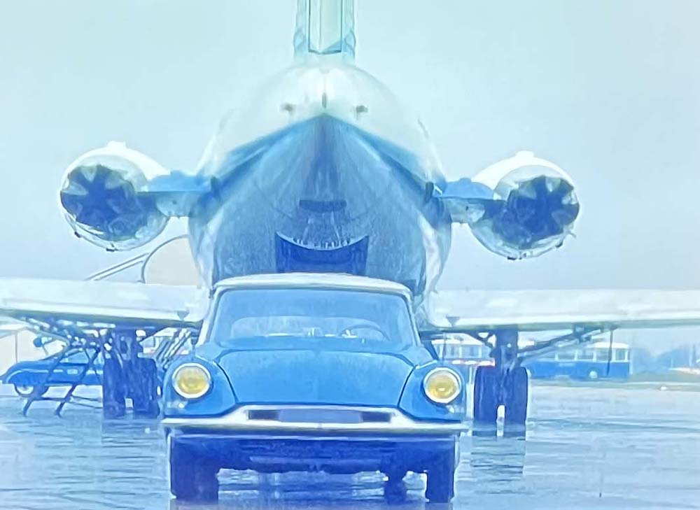 Après cette longue digression sur cet aéroport de Toussus le Noble, expliquant que le rond point, disparu au début des années 70, ait été effacé de la mémoire collective, revenons au shooting des DS. Cette photo est donc prise depuis le bâtiment de la tour de contrôle. |
