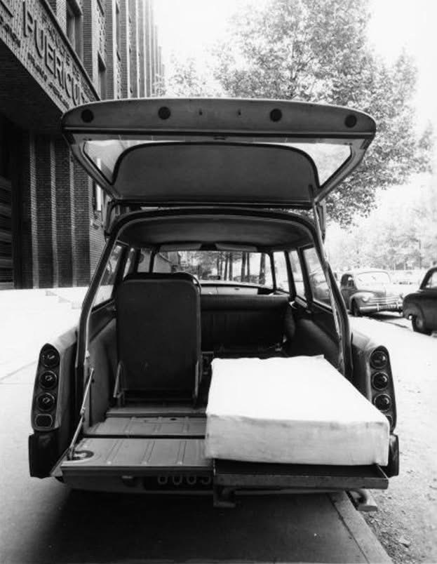Ici la première ambulance arrivée en Suède. On distingue un panneau "Luxe" alors que les ambulances sont toutes "Confort": c'est sans doute un break habillé.