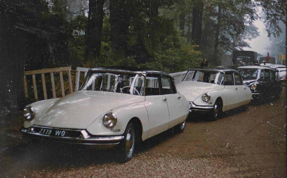 Ou bien sont-ce des bidasses de Villacoublay, ceux que l'on voit avec la DS numéro 13 du shooting de Paris Match? Noter que cette voiture n'a pas non plus les flancs blancs. |