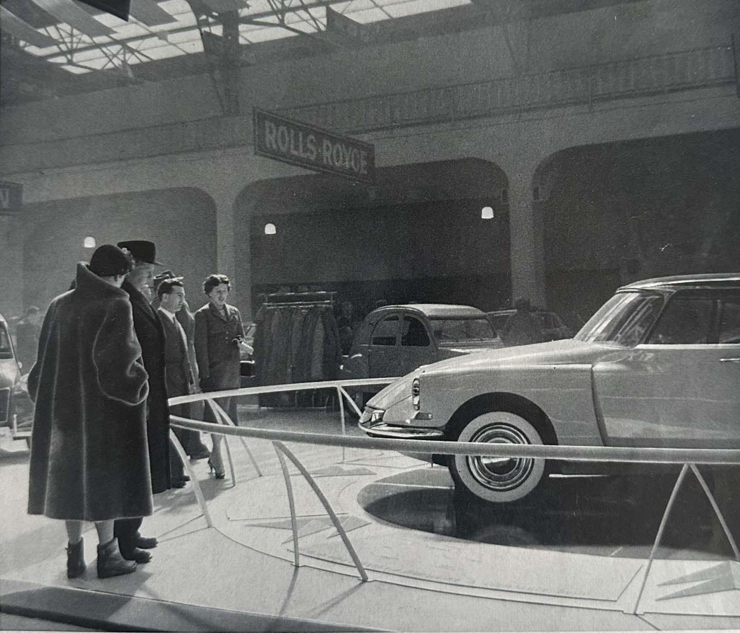 Le salon de Mars 1959 expose la DS 176 de Coltelloni, vainqueur au Monte Carlo en Janvier 59, avec une jolie évocation artistique de l'un des catalogues DS.