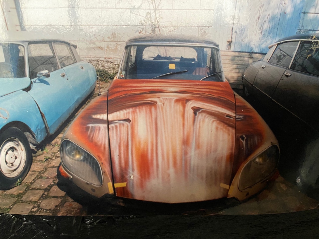 Tuning too much A gauche une intéressante évocation des peintures Africaines. L'encadrement jaune n'est pas de moi, mais de l'artiste, sur le site où j'ai pris cette photo, à savoir le garage "Gare du Nord", qui, comme son nom l'indique, est Hollandais (http://www.citroen-ds-parts.com)